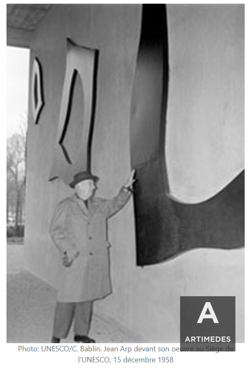 Im Jahr 1957 wählte das UNESCO-Komitee für Architektur und Kunstwerke in Zusammenarbeit mit dem Komitee der künstlerischen Berater elf Künstler aus, um die künstlerische Dekoration seines 1958 eingeweihten ständigen Hauptsitzes in Paris vorzunehmen. In diesem Zusammenhang ein skulpturales Werk ist ein Auftragswerk von Jean Arp. Das in den architektonischen Plan des Gebäudes integrierte „UNESCO-Sternbild“ war ab 1958 an der Außenwand der Bibliothek zu sehen, bevor es in den 1970er Jahren ins Innere verlegt und in der Lobby des Exekutivrats ausgestellt wurde.